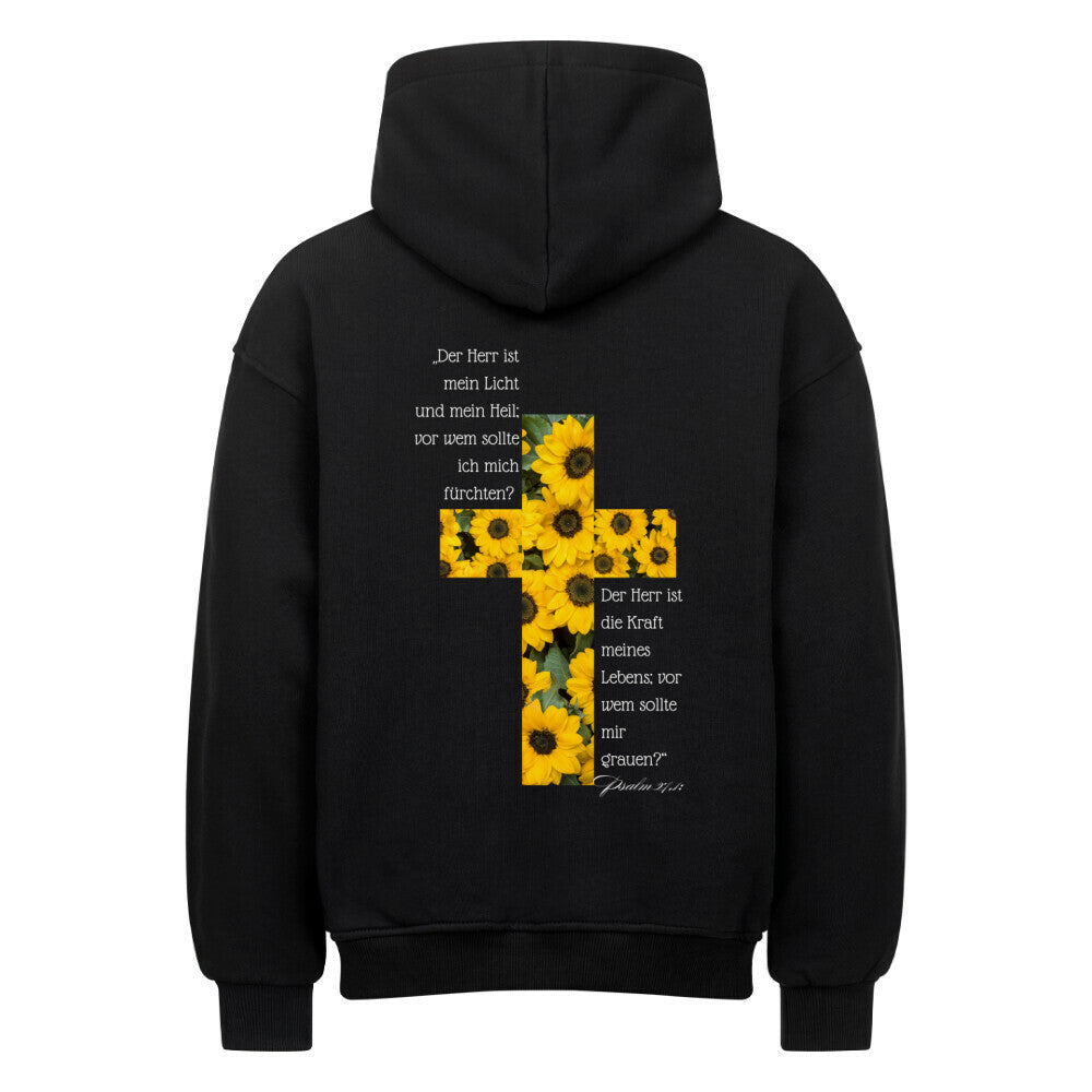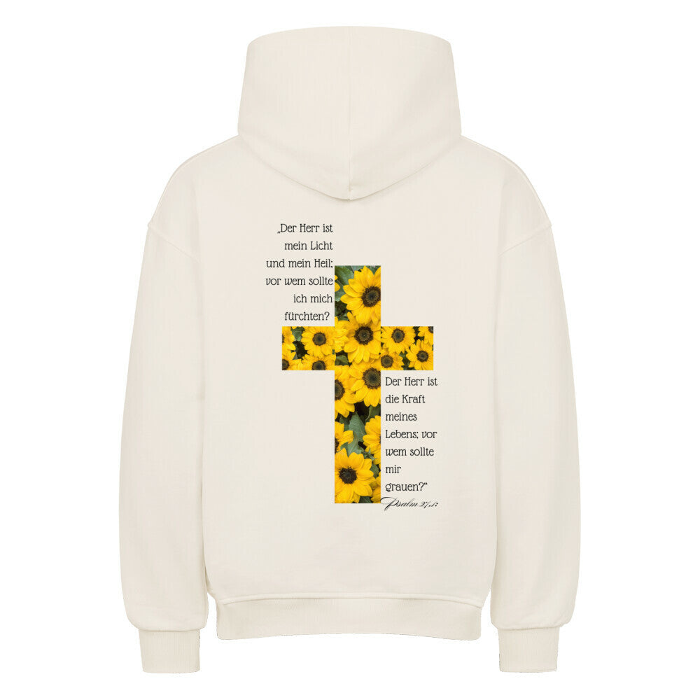 Premium Oversized Hoodie "Kreuz mit Sonnenblumen" Backprint
