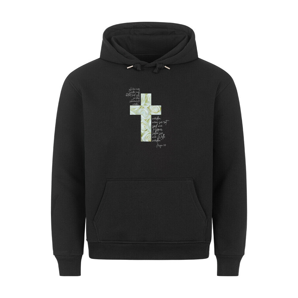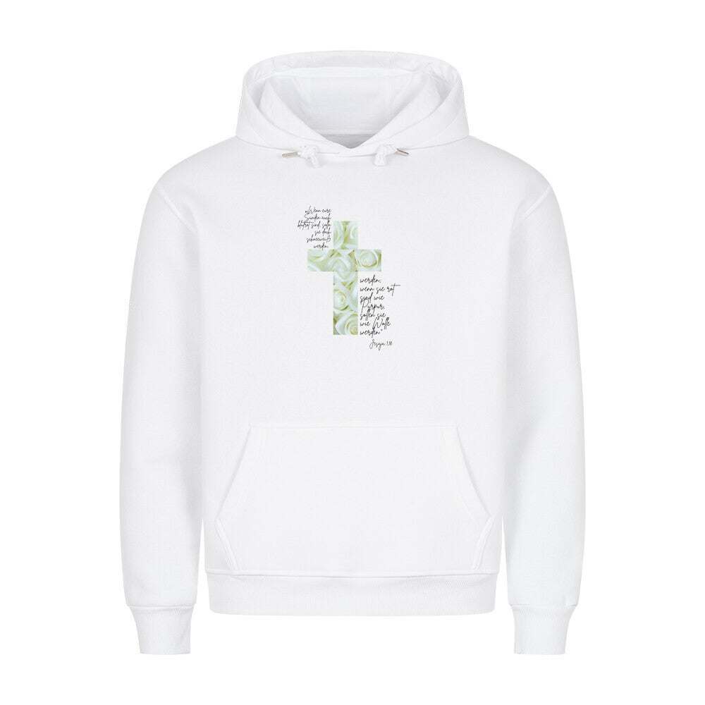 Classic Hoodie "Kreuz mit weißen Rosen" Frontprint