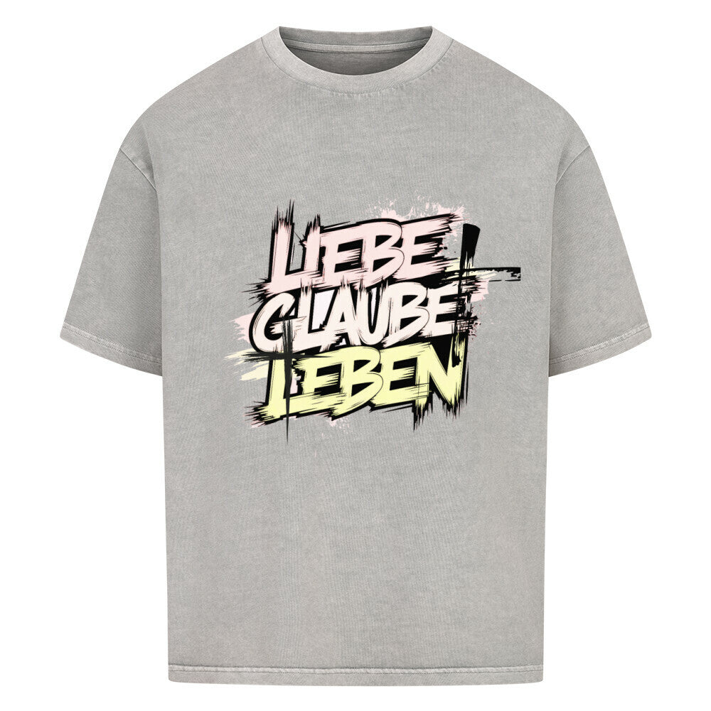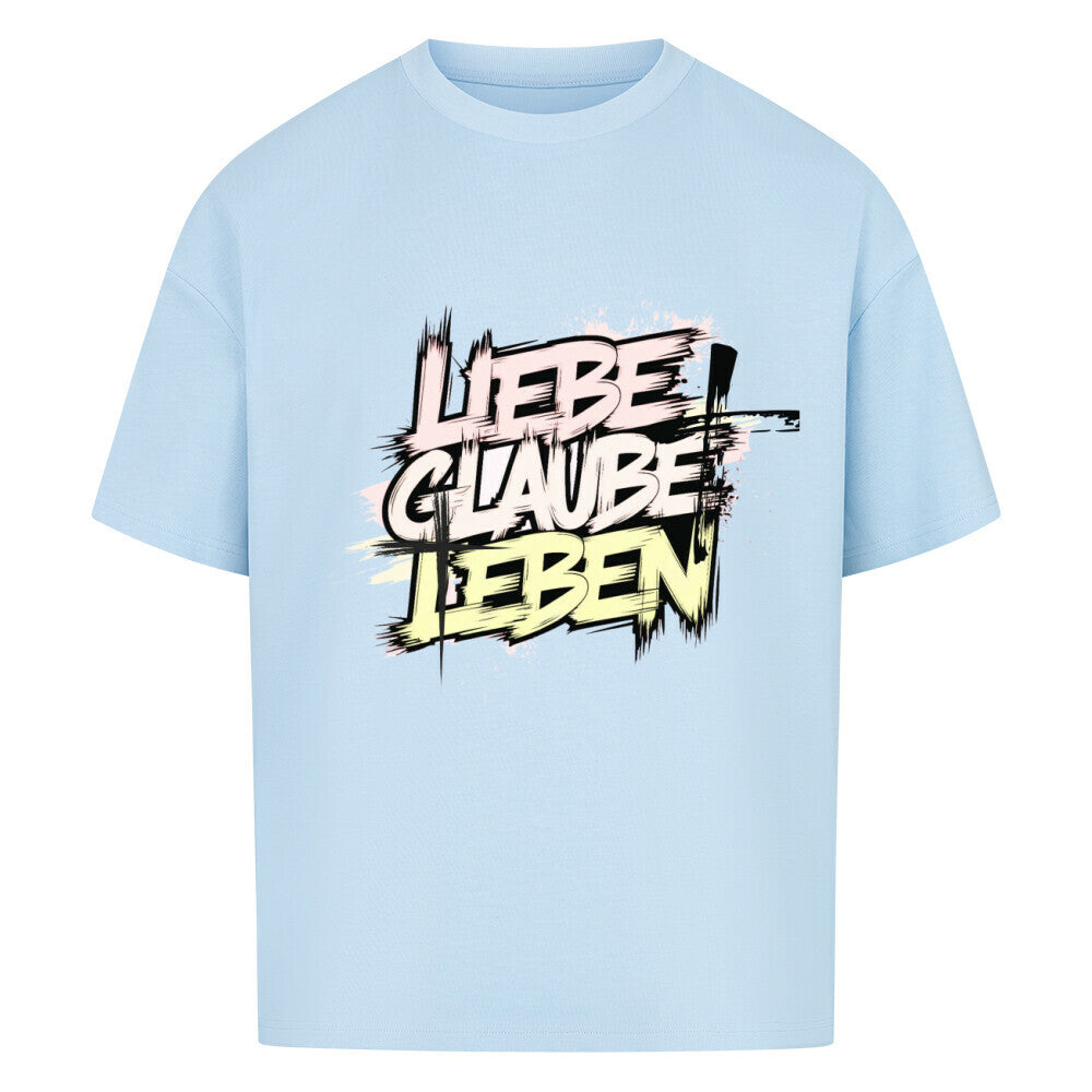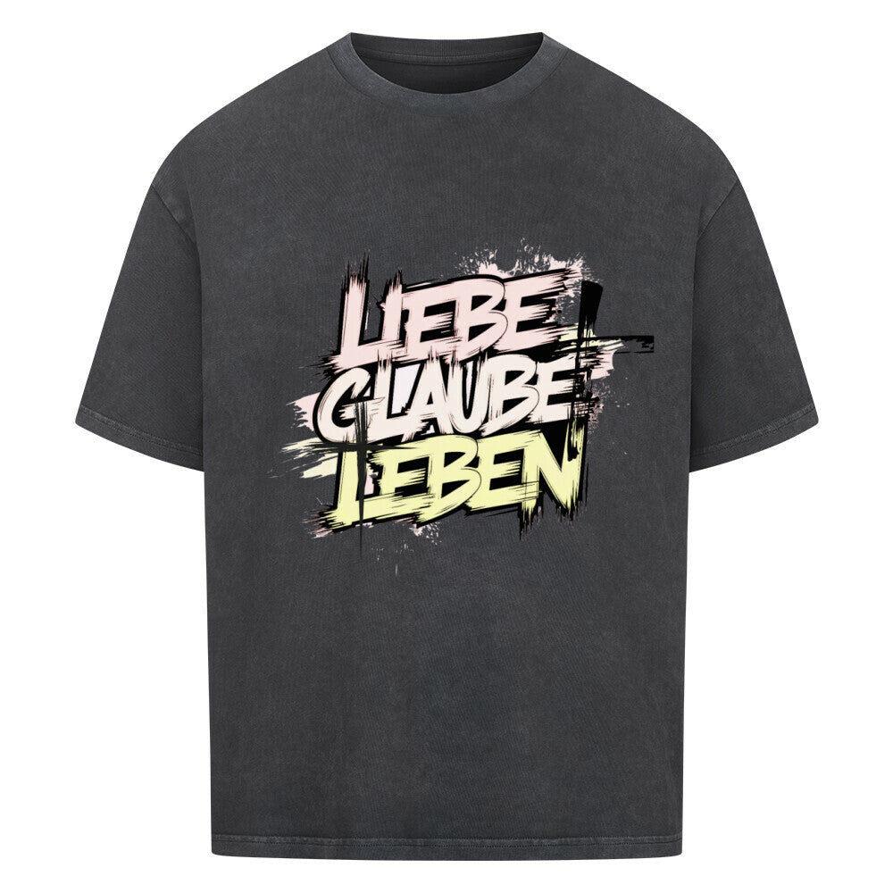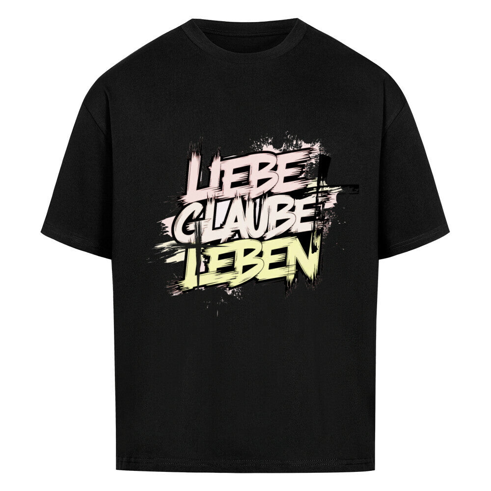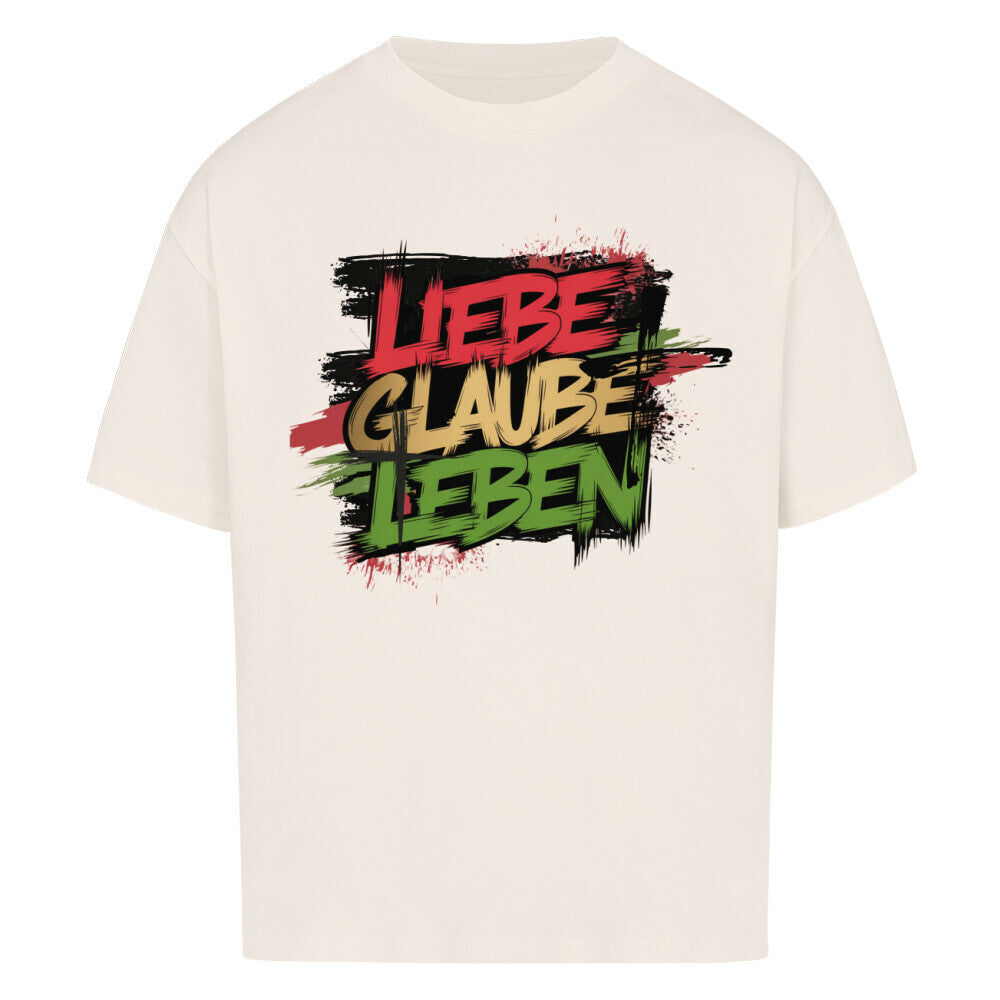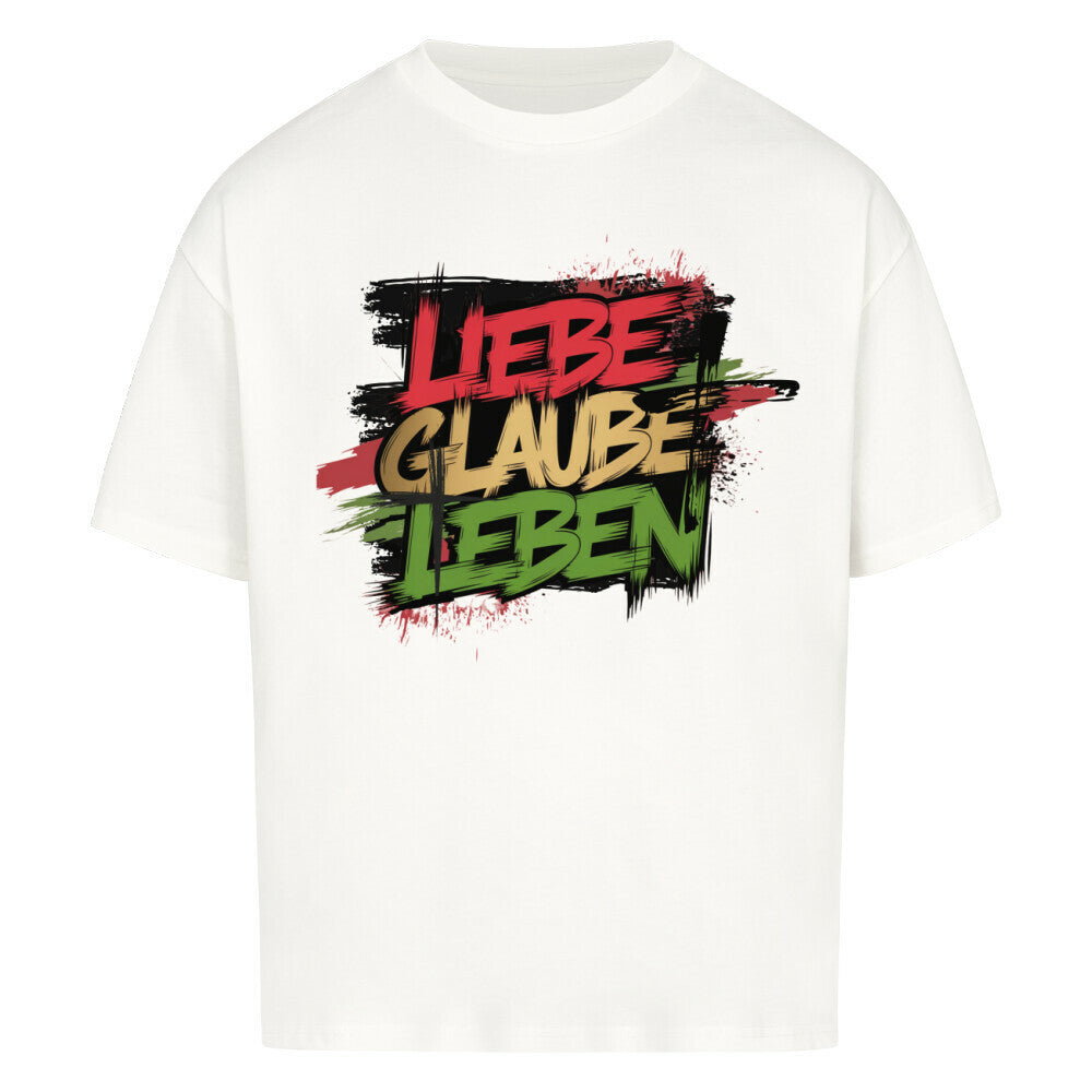 Premium Oversized Shirt "Lieben, Glauben, Leben" Frontprint
